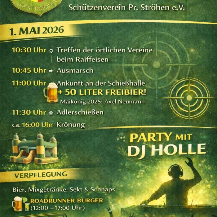 Vom 20. bis 22. Juni 2025 fand in Pr. Ströhen das traditionielle Schützenfest statt. Start war am Freitag mit dem Kinderschützenfest und Kaffeetafel für die Alte Garde.